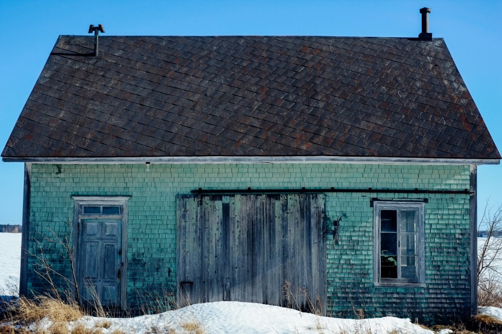 Hangar, Saint-Basile-de-Portneuf Ce hangar sert à entreposer de la machinerie agricole. Il n’est pas entretenu. D’ici dix ans, il s’effondrera de lui-même.